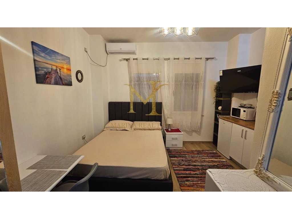 Apartamenti ka organizim funksional, me ambient ditor të bollshëm të kombinuar me kuzhinën, një dhomë gjumi komode dhe një tualet. Pozicionimi i tij siguron ndriçim natyral dhe qasje të lehtë në plazh, si edhe në të gjitha shërbimet e nevojshme: supermarkete, transport urban, bare dhe restorante.
