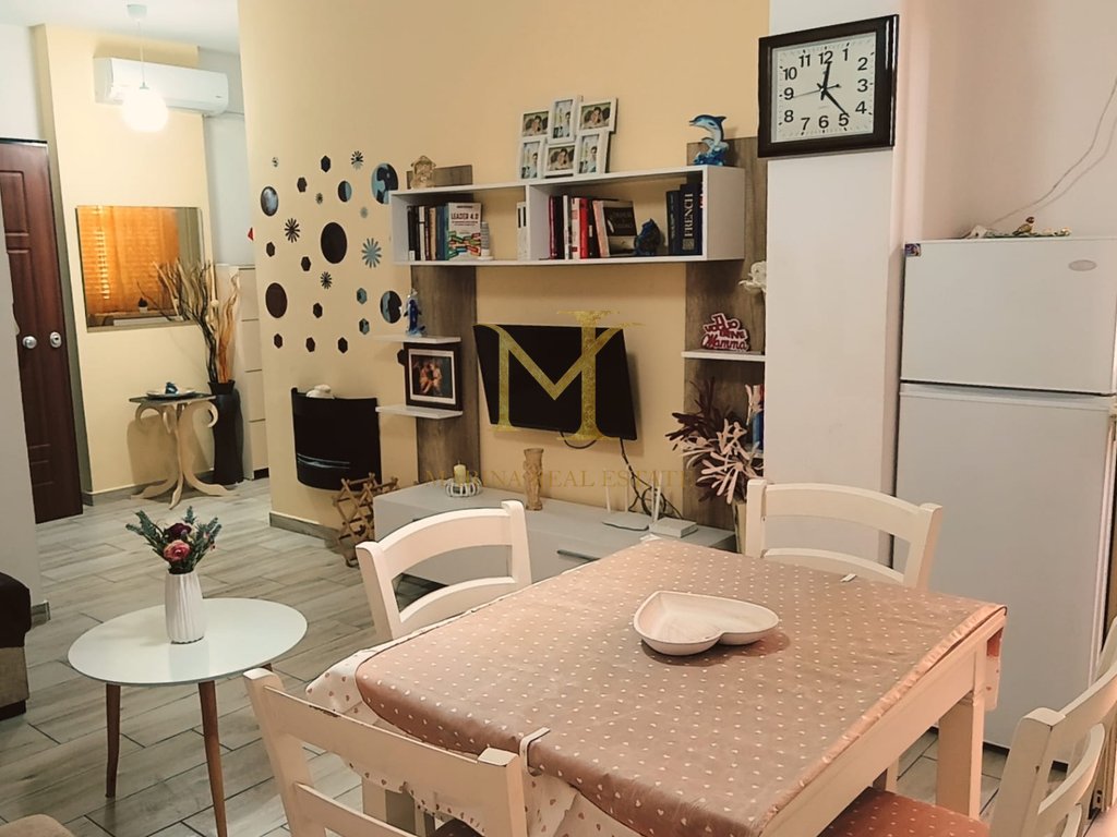 Apartamenti ndodhet te Shkëmbi i Kavajës, pas shinave, në katin e dytë të një pallati të ri. Ka pamje nga deti dhe është i mobiluar ne menyre te detajuar me Arkitekt. Ka një sipërfaqe totale prej 110 m2. Është 300 metra larg detit dhe gjithashtu ka parkim për banorët. Është i organizuar në një dhomë ndenjeje dhe kuzhine, dy dhoma gjumi, një banjo dhe të gjitha dhomat kanë dalje në ballkon.